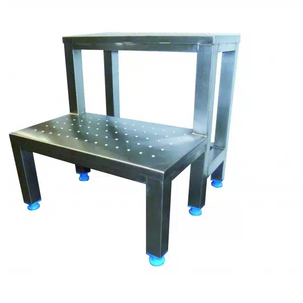 Marches pieds, 2 marches perforées anti-dérapantes, un matériel professionnel idéal pour les restaurateurs.