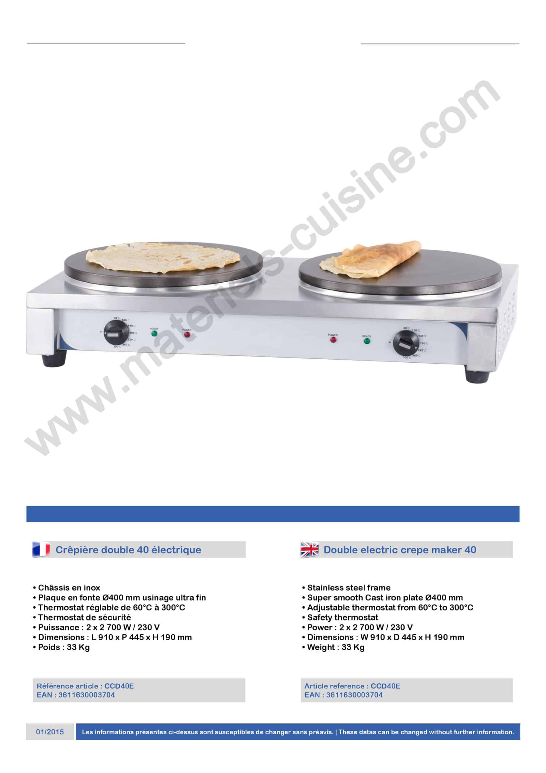 Materiel crêperie professionnel double 40 électrique 2 x 2700 W
