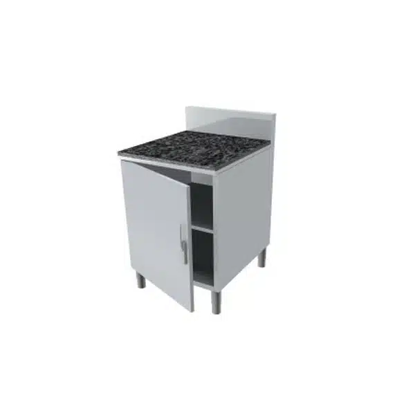Meuble arrière pour service traditionnel dessus granit noir 1 porte battante P 700 mm