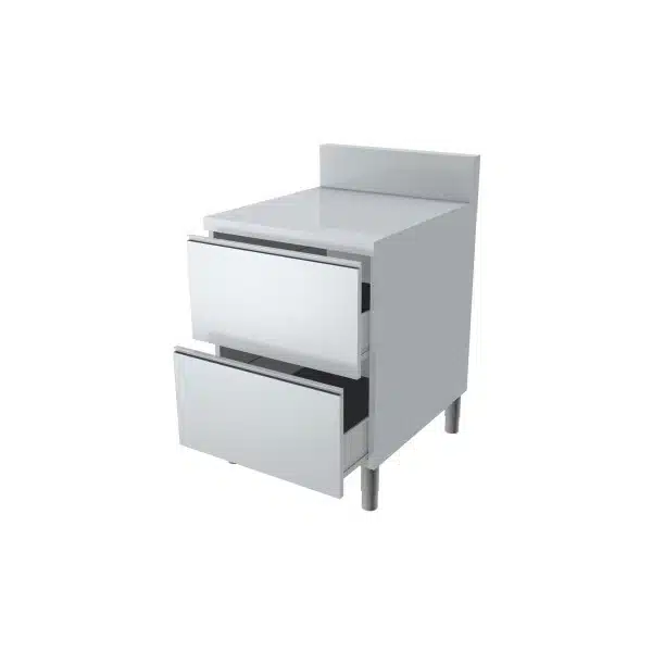 Meuble tiroirs, dessus en inox, pour ranger et trier vos affaires.