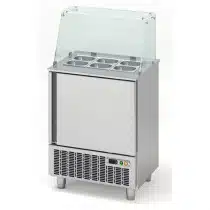 Meuble de préparation fast-food, parfait pour le stockage et l’exposition de vos produits alimentaires, avec visibilité maximum du produit grâce à cette surface vitrée.