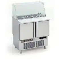 Meuble de préparation fast-food, parfait pour le stockage et l’exposition de vos produits alimentaires, avec visibilité maximum du produit grâce à cette surface vitrée.