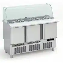 Meuble de préparation fast-food, parfait pour le stockage et l’exposition de vos produits alimentaires, avec visibilité maximum du produit grâce à cette surface vitrée.
