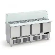 Meuble de préparation fast-food, parfait pour le stockage et l’exposition de vos produits alimentaires, avec visibilité maximum du produit grâce à cette surface vitrée.