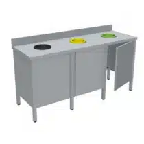 Meuble de tri, pratique et facile à utiliser, idéal pour le triage du déchets, dispose d’une rampe pour poser les plateau, d’une porte battante pour facilité l’accès aux sacs pour leur évacuation.