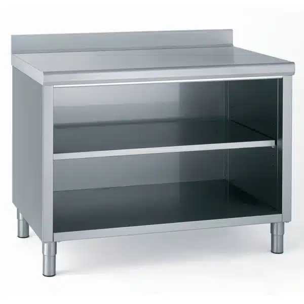 Meuble inox porte ouverte sur 1 face, avec dosseret