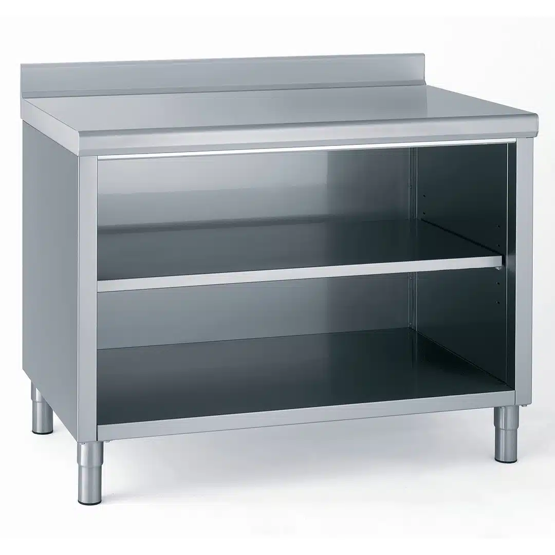 Meuble inox porte ouverte sur 1 face avec dosseret largeur 700 mm