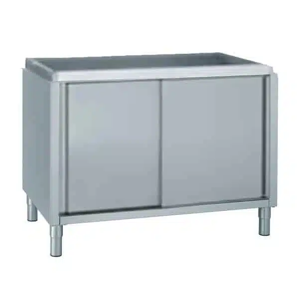 Meuble pour trancheur dessus inox porte coulissante P 700 mm inox ferritique