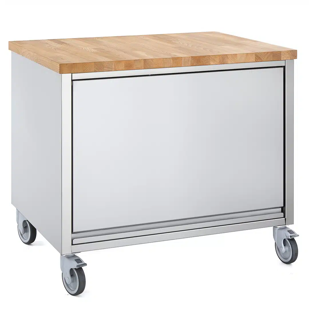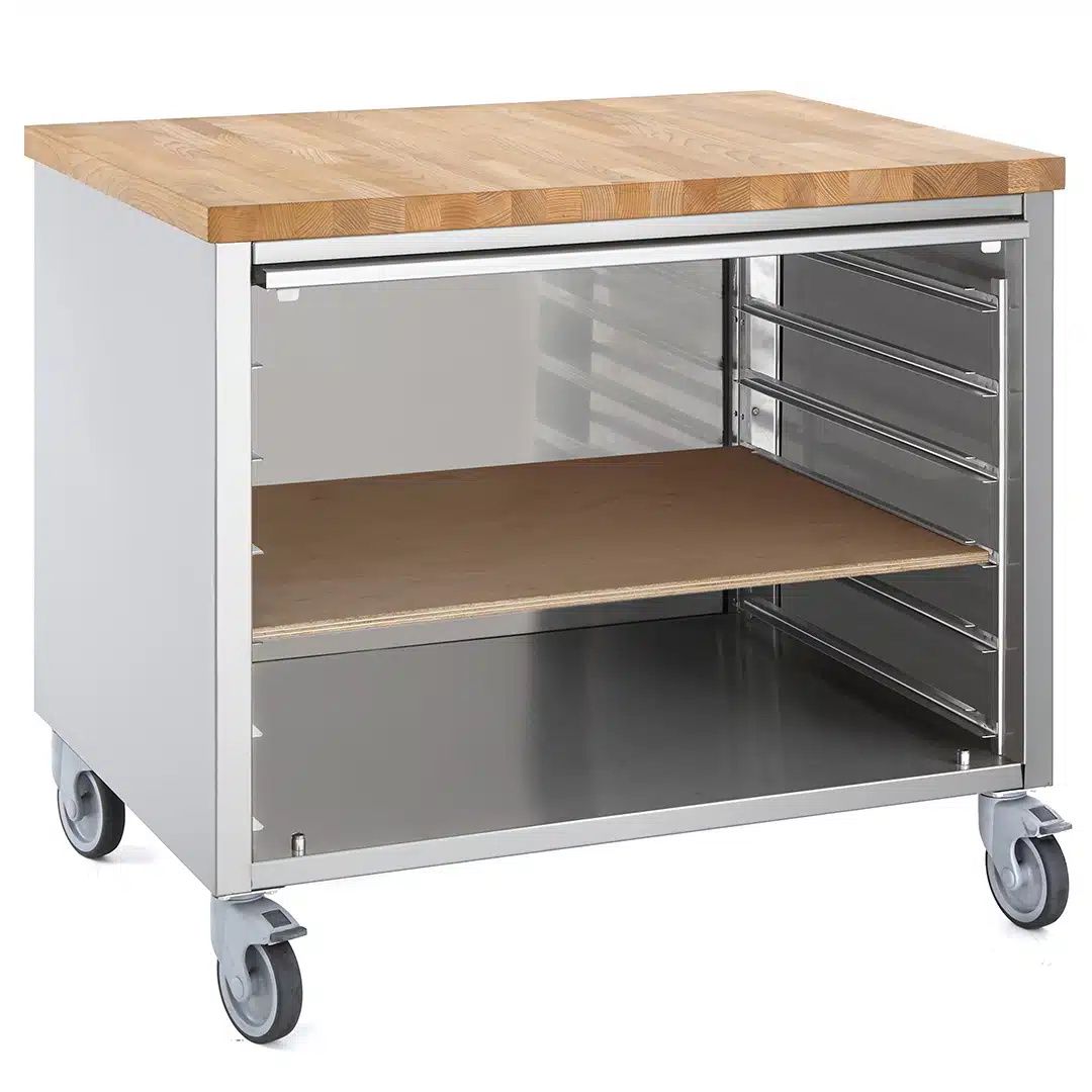 Meuble parisien en acier inoxydable, idéal pour bien ranger et aménager vos matériels de cuisine.