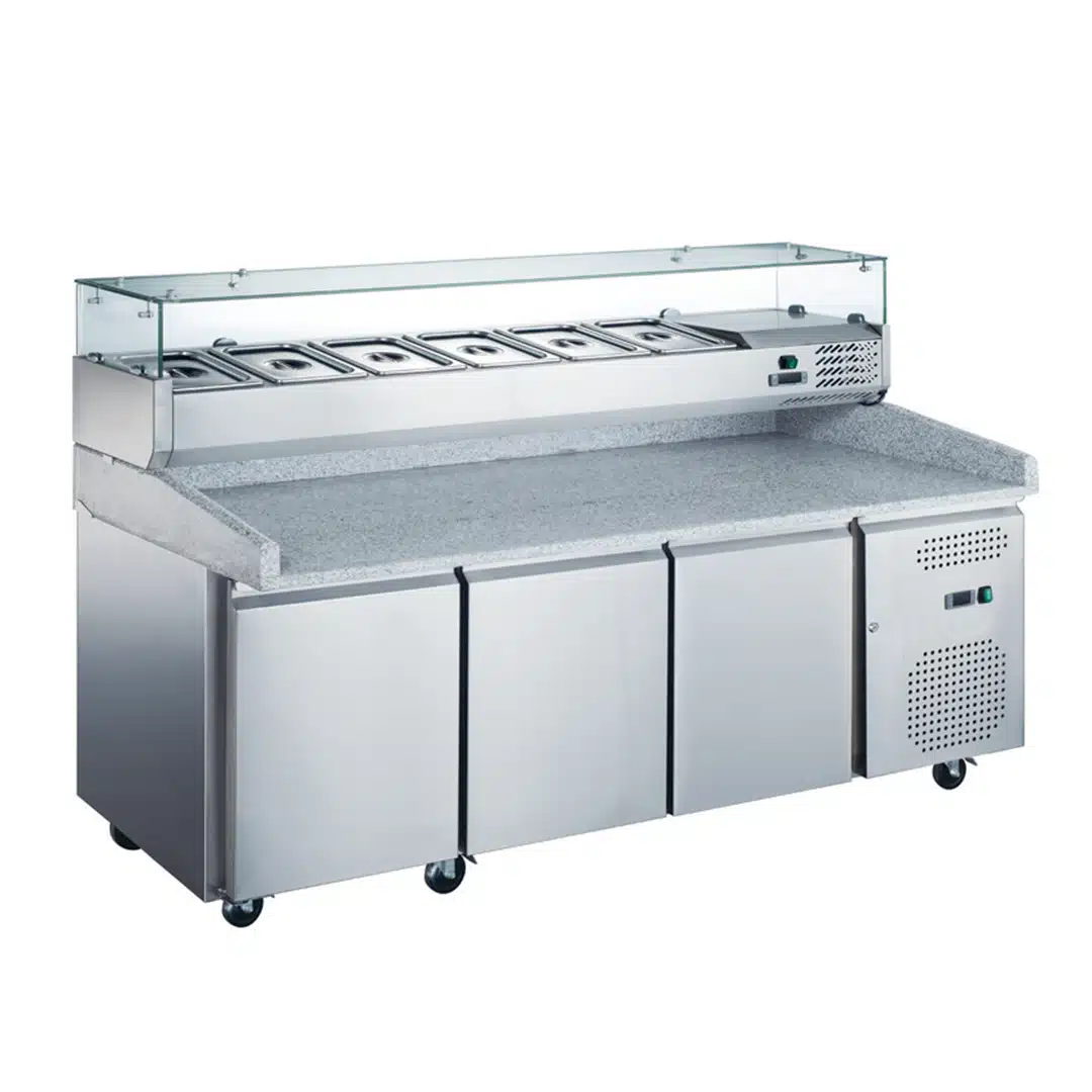 Meuble à Pizza Réfrigéré 3 Portes avec Vitrine – Plan de Travail en Granit