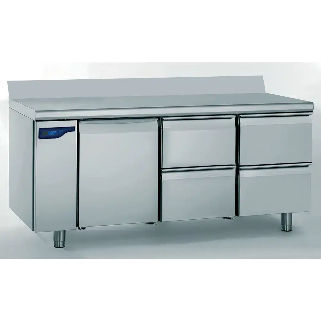 Meuble réfrigéré gastronorme sans groupe acier inoxydable froid positif 1 portes + 2 x 2 tiroirs 1000 W
