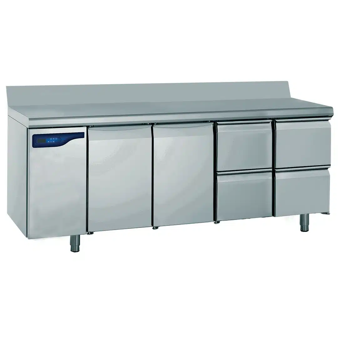 Meuble réfrigéré gastronorme sans groupe acier inoxydable froid positif 2 portes + 2 x 2 tiroirs ht 210 mm 1170 W