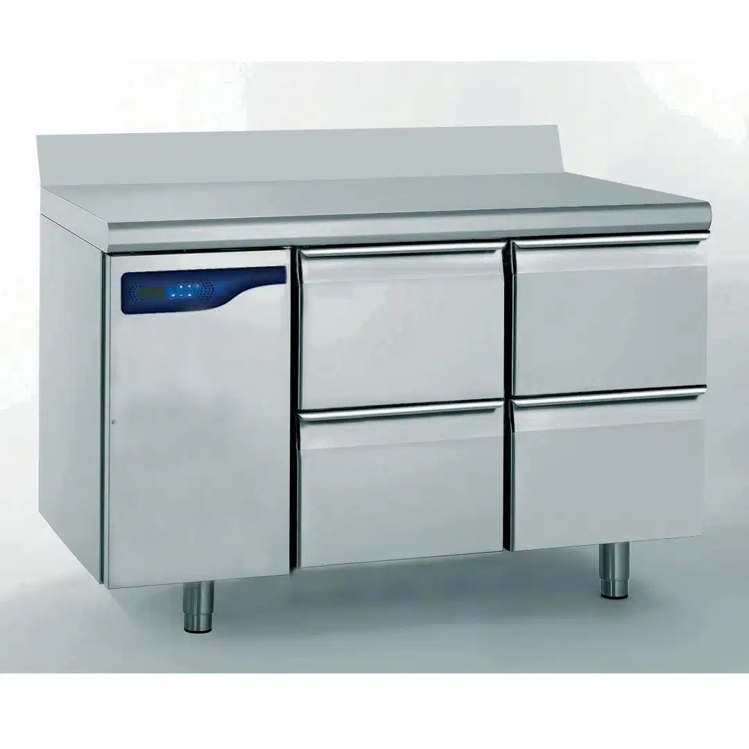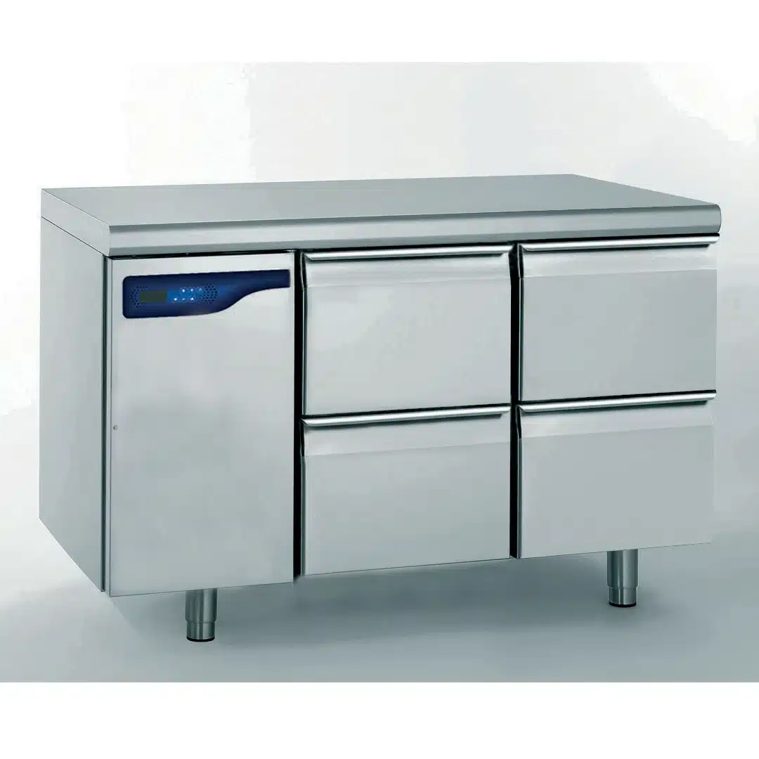 Meuble réfrigéré GN 1/1, 2 x 2 tiroirs, facile à nettoyer grâce à l’intérieur entièrement rayonné, avec des ouvertures uniformément réparties dans le plafond qui garantissent une répartition homogène de la température à l’intérieur de la réserve.