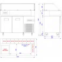 | Dimensions | Hauteur:1325 mm:1:0,Profondeur (largeur):700 mm:2:0,Longueur:1400 mm:3:0,Type de produit:2 portes:4:0,Type de matière:Inox:5:0,Contenance:8 x GN 1/6 + 2 x GN 1/9:23:0,Tension:230 V Mono:26:0,Puissance:950 W:28:0,Gamme température:-2/+8°C:42:0,Dégivrage:AUT:78:0,Réfrigérant:R134A:85:0 |