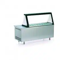Meuble salade-bar 800, parfait pour le stockage et l’exposition de vos produits alimentaires, avec visibilité maximum du produit grâce à cette surface vitrée.