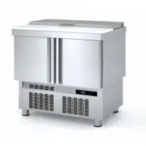Meuble saladette avec plaque de travail polyéthylène, dessus inox , 2 portes pleines, 169 L