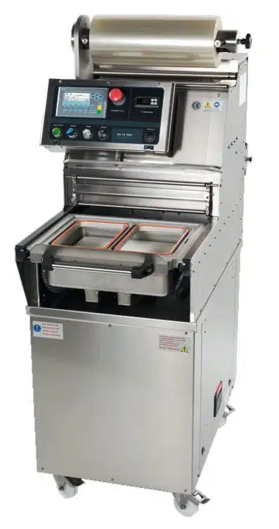 Operculeuse barquette, semi-automatique industrielle BS 25 PRO sans matrice, pour operculer des barquettes avec vide et injection de gaz.