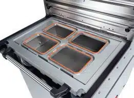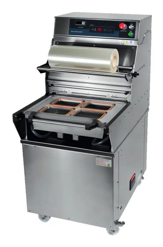 Operculeuse barquette, semi-automatique industrielle BS 40 BASIC sans matrice, pour operculer des barquettes avec vide et injection de gaz.