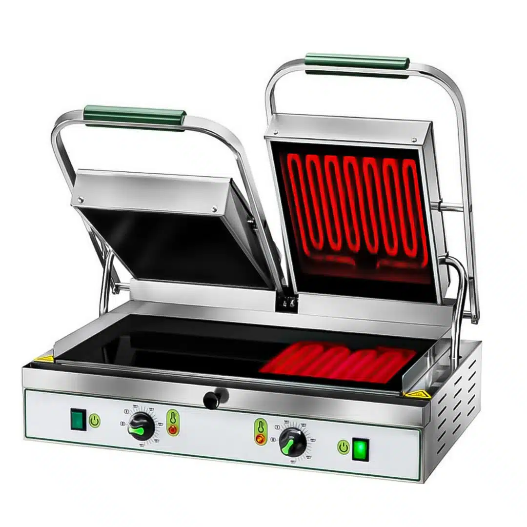 Panini grill de contact vitrocéramique,plaque double, inox