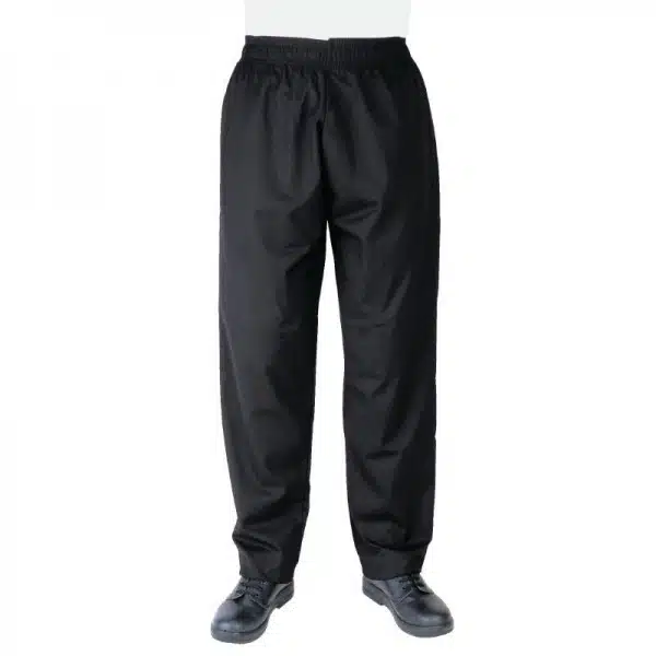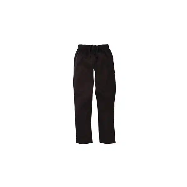 Pantalon de cuisinier mixte couleur noire, élégant et durable avec une taille extra large pour un confort accru..