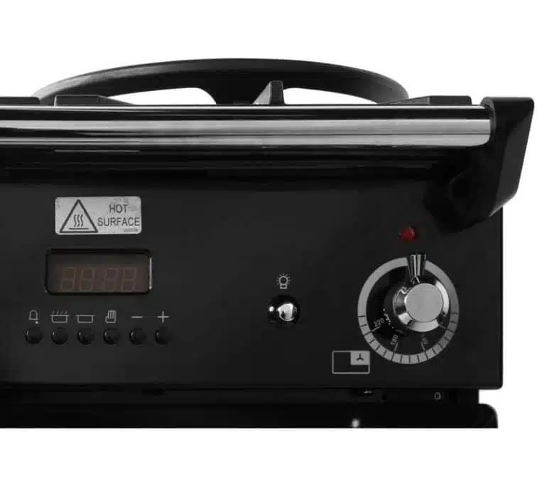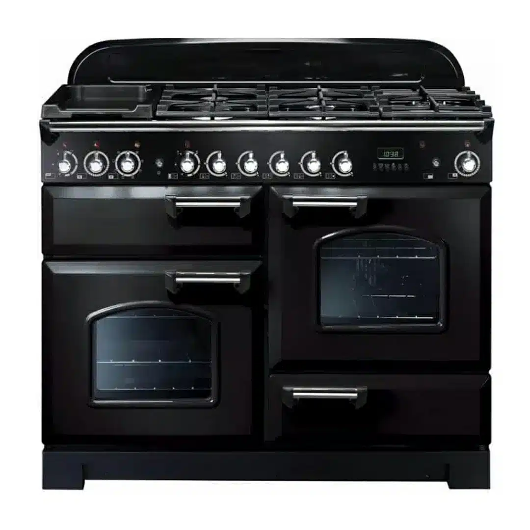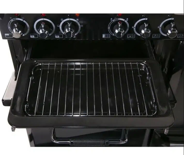 Piano de cuisson mixte noir chrome 5 brûleurs à gaz + multizone 2 fours électriques