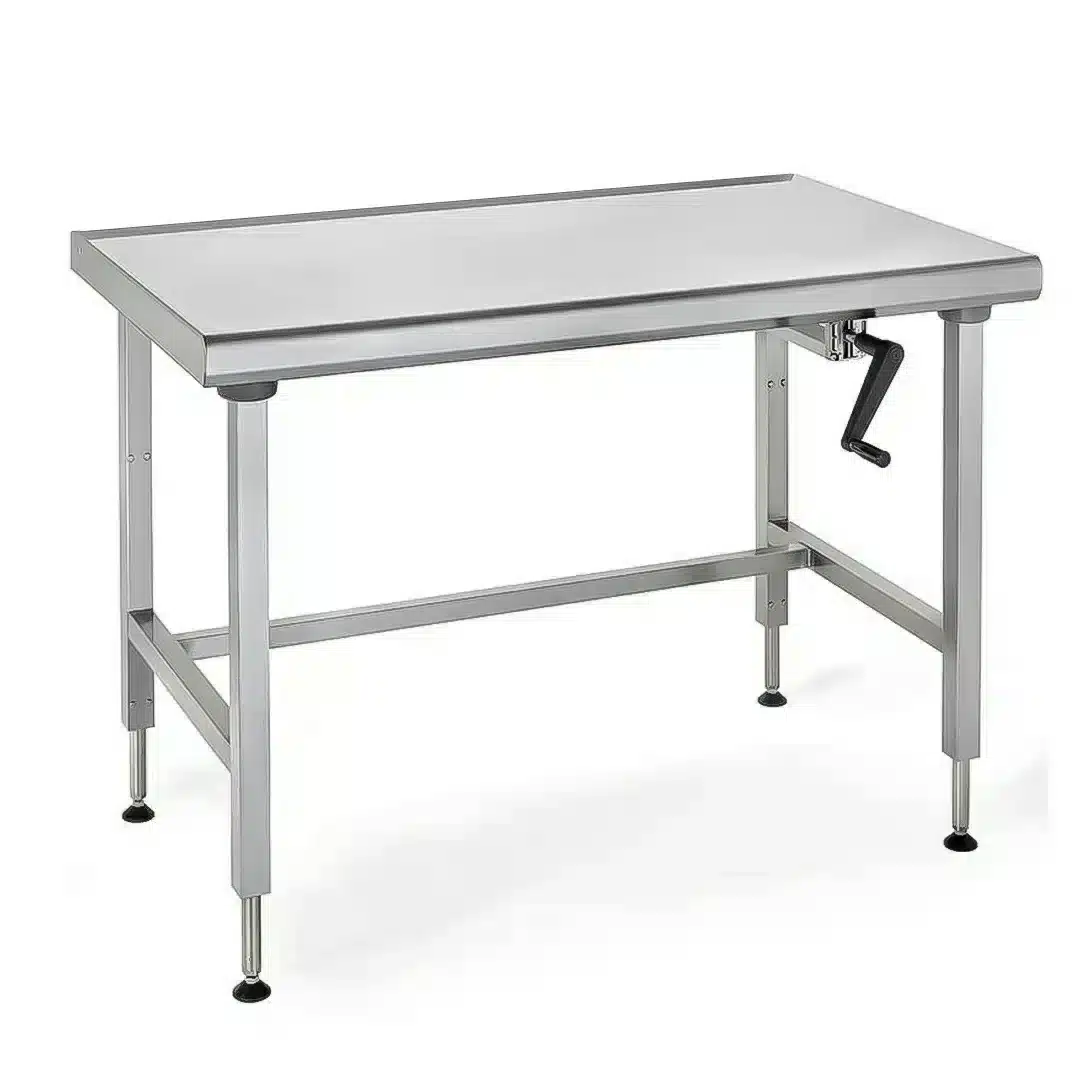 Plan de travail à hauteur réglable en acier inoxydable.