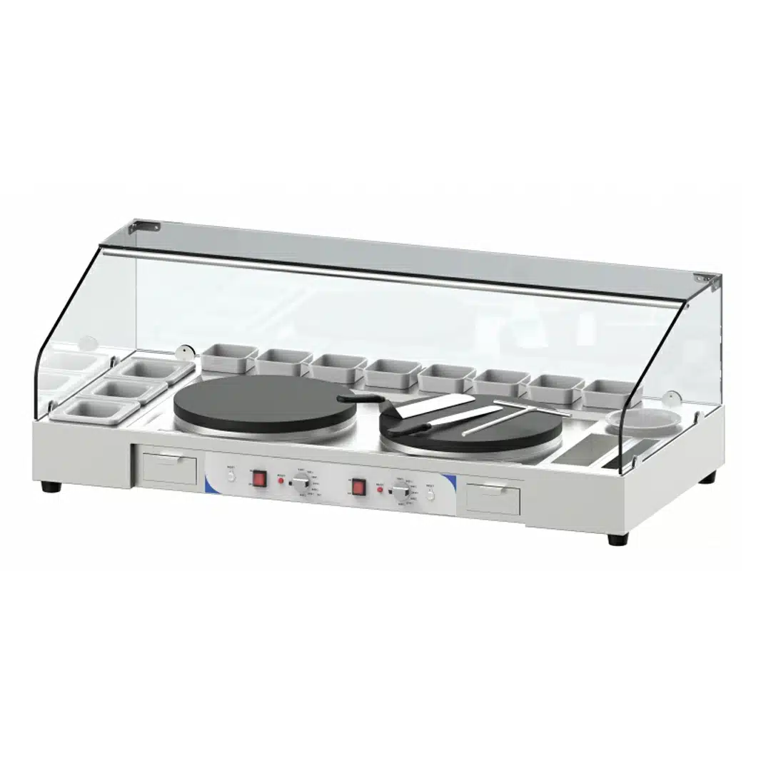 - Double performance : 2 Crêpières électriques Ø400 mm encastrées fonctionnant indépendamment pour une production rapide et simultanée.
