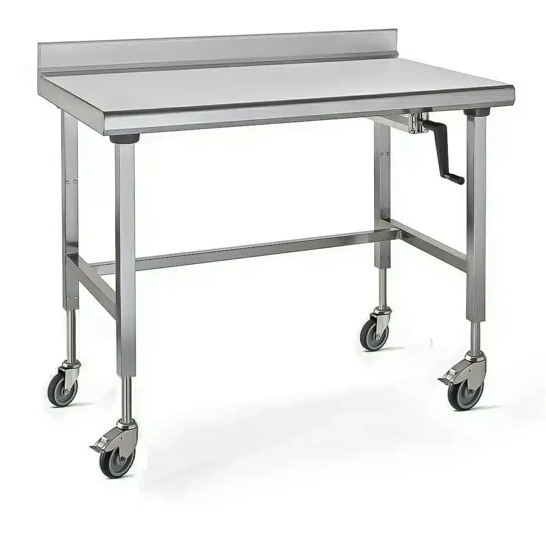 Plan de travail sur roues à dosseret acier inoxydable hauteur réglable