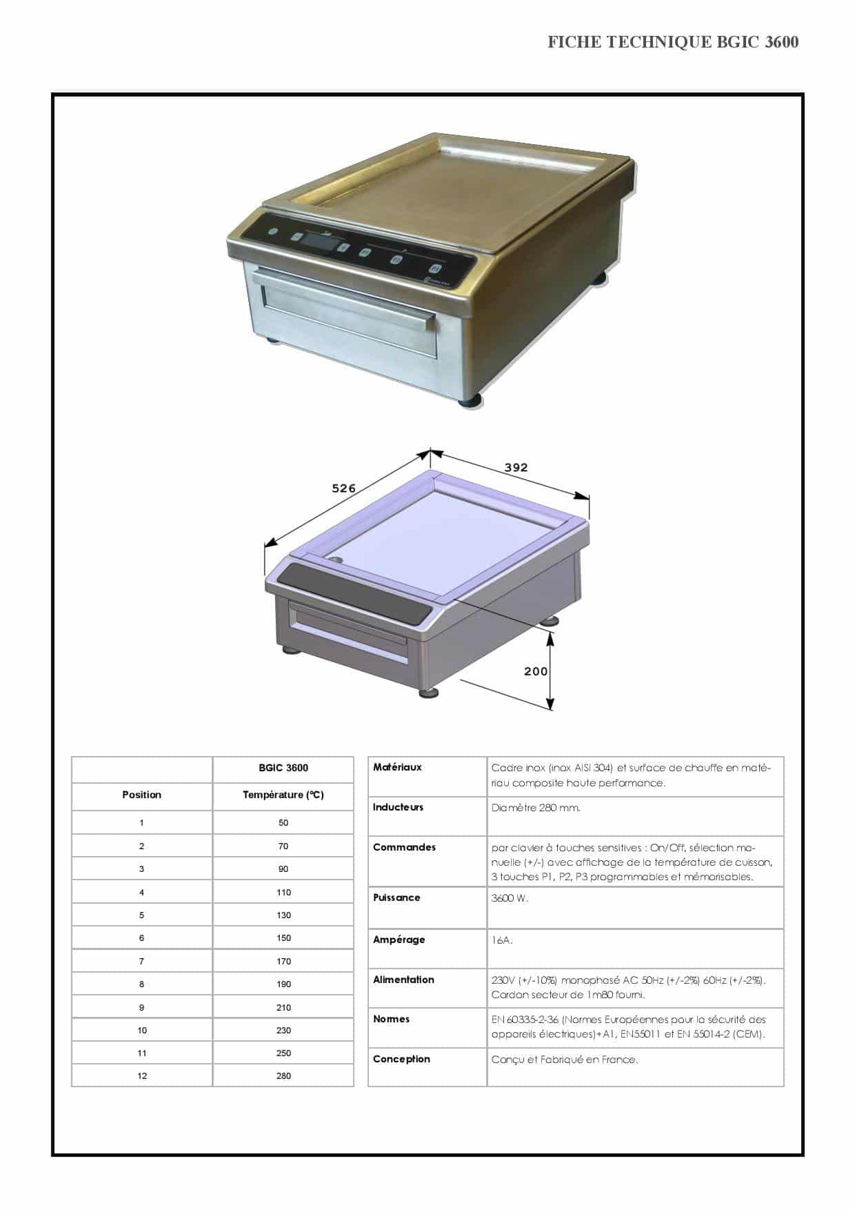 Plancha induction posable modèle BGIC 3600 monophasé