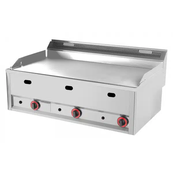 Plaque à snacker gaz, triple lisse, fiable et résistante, pour une cuisson parfaite et précise de vos aliments.