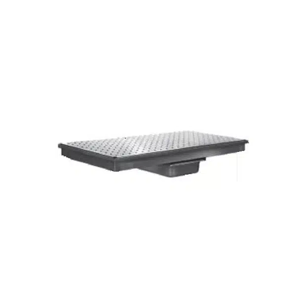 bords anti-ruissellement, dessus tôle perforée inox amovible, fond pointe de diamant avec évacuation,