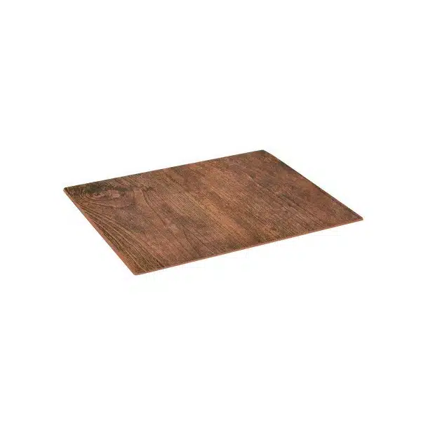 Plateau rectangulaire en melamine, imitation bois sur pieds silicone
