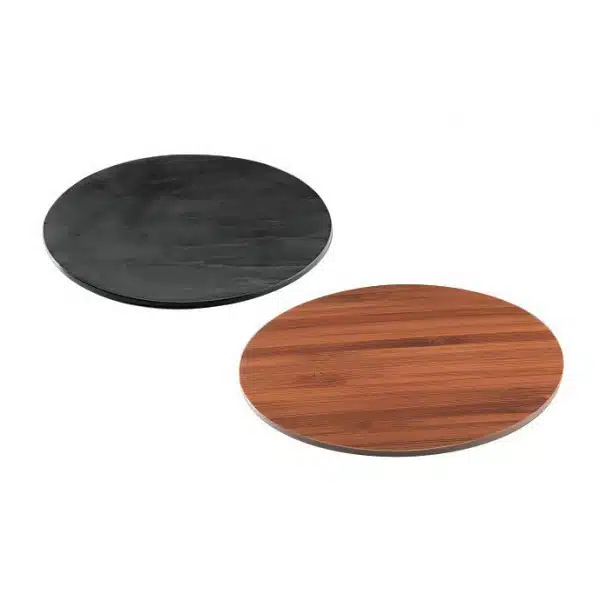Plateaux ronds en mélamine 2 faces imitation bambou et ardoise