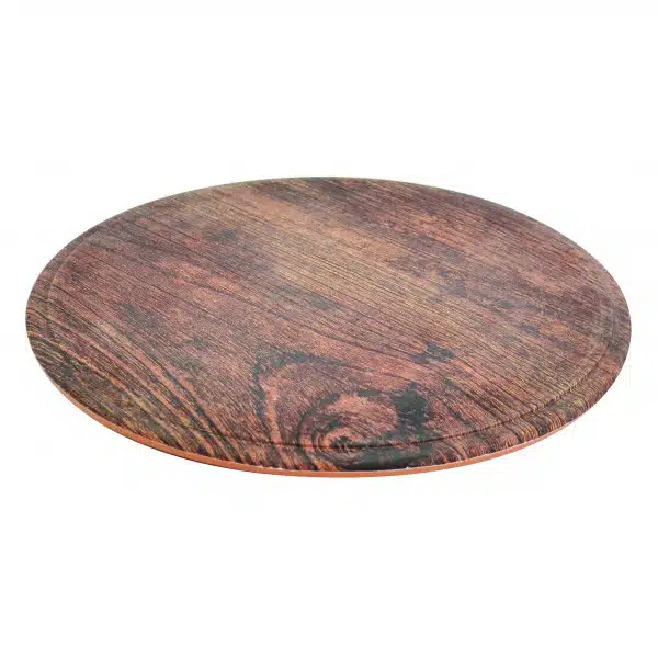 Plateaux ronds en mélamine imitation bois sur pieds en silicone