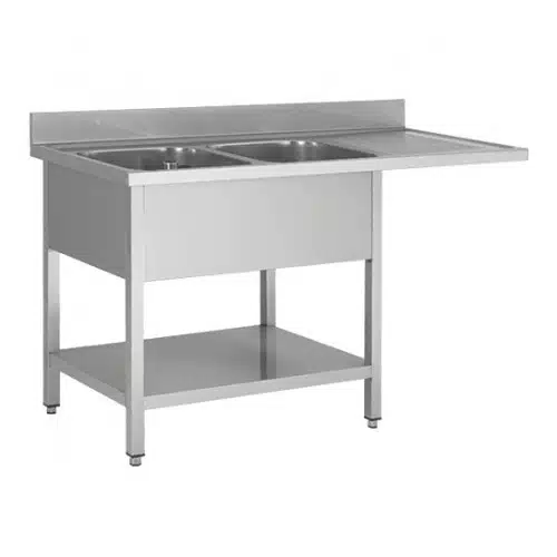 Plonge avec passage lave-vaisselle sur pieds carrés, indispensable pour assurer la propreté de vos vaisselles et de vos ustensiles de cuisine.