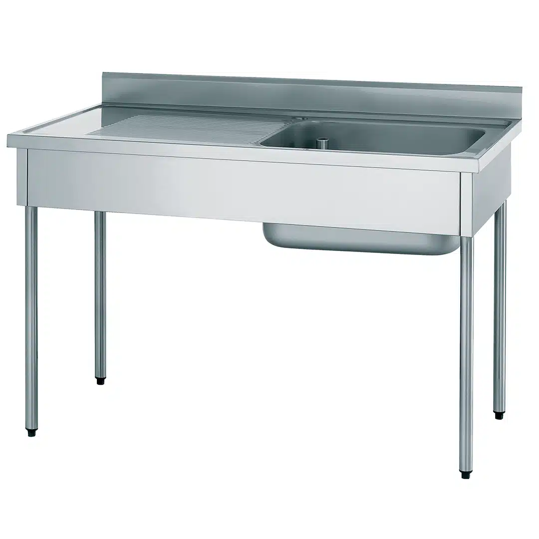 Plonge démontable, acier inoxydable, avec dosseret, 1 bac, égouttoir à droite, essentielle pour assurer la propreté de vos vaisselles et de vos ustensiles de cuisine.