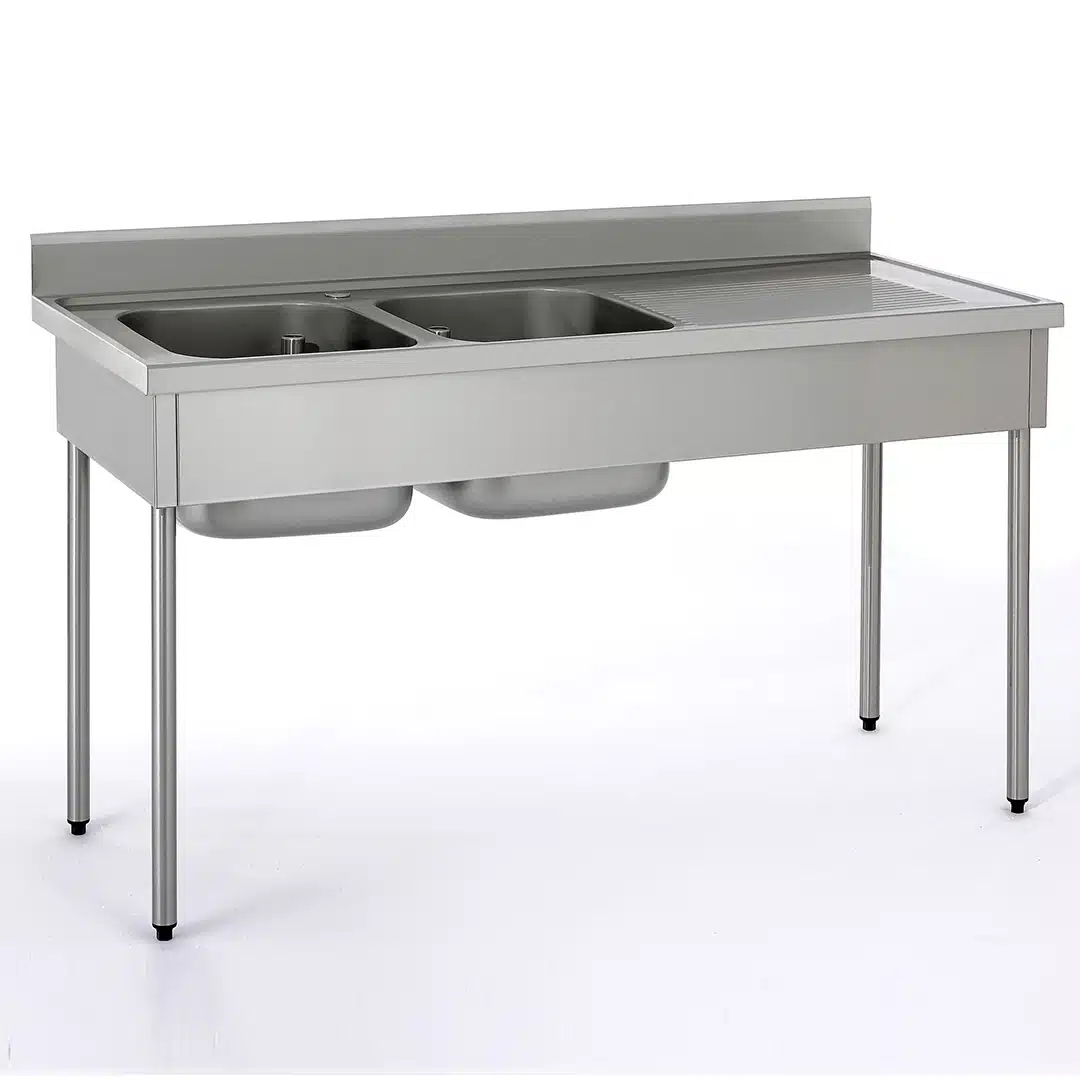Plonge démontable, acier inoxydable, avec dosseret, 2 bacs, égouttoir à droite, essentielle pour assurer la propreté de vos vaisselles et de vos ustensiles de cuisine.