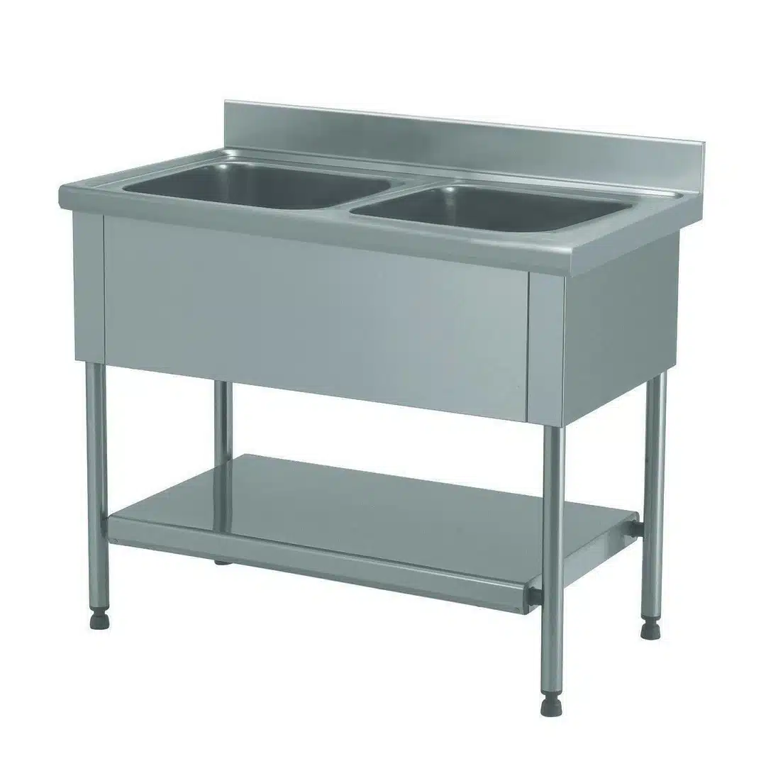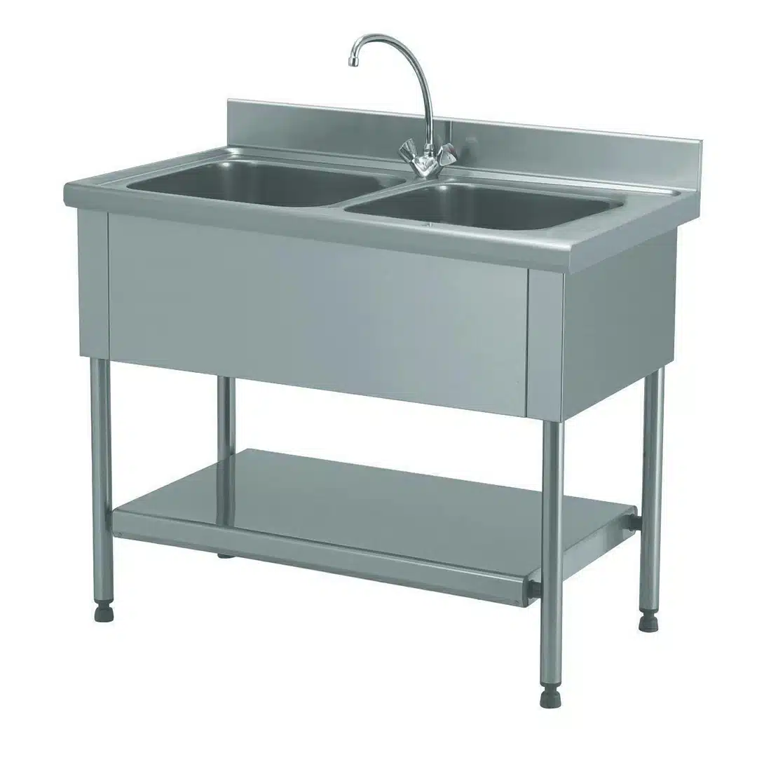 Plonge démontable avec étagère, 2 bacs, essentielle pour assurer la propreté de vos vaisselles et de vos ustensiles de cuisine.