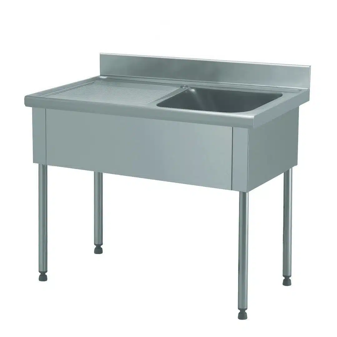 Plonge démontable sans étagère adossée 1 bac à droite 1 égouttoir à gauche L 1200 x l 700 x H 900 mm