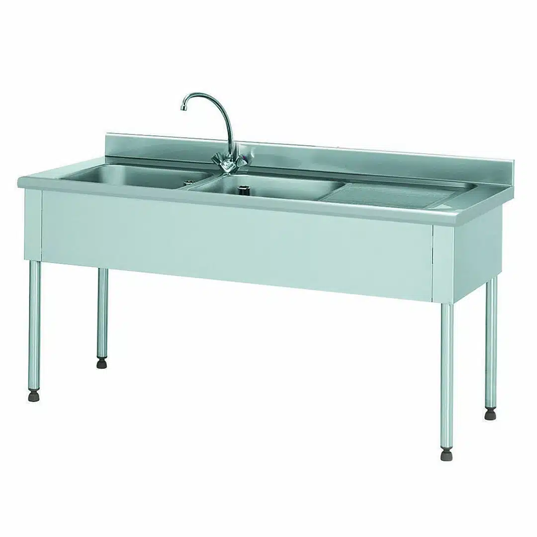 Plonge démontable, sans étagère, 2 bacs à gauche, 1 égouttoir à droite, essentielle pour assurer la propreté de vos vaisselles et de vos ustensiles de cuisine.