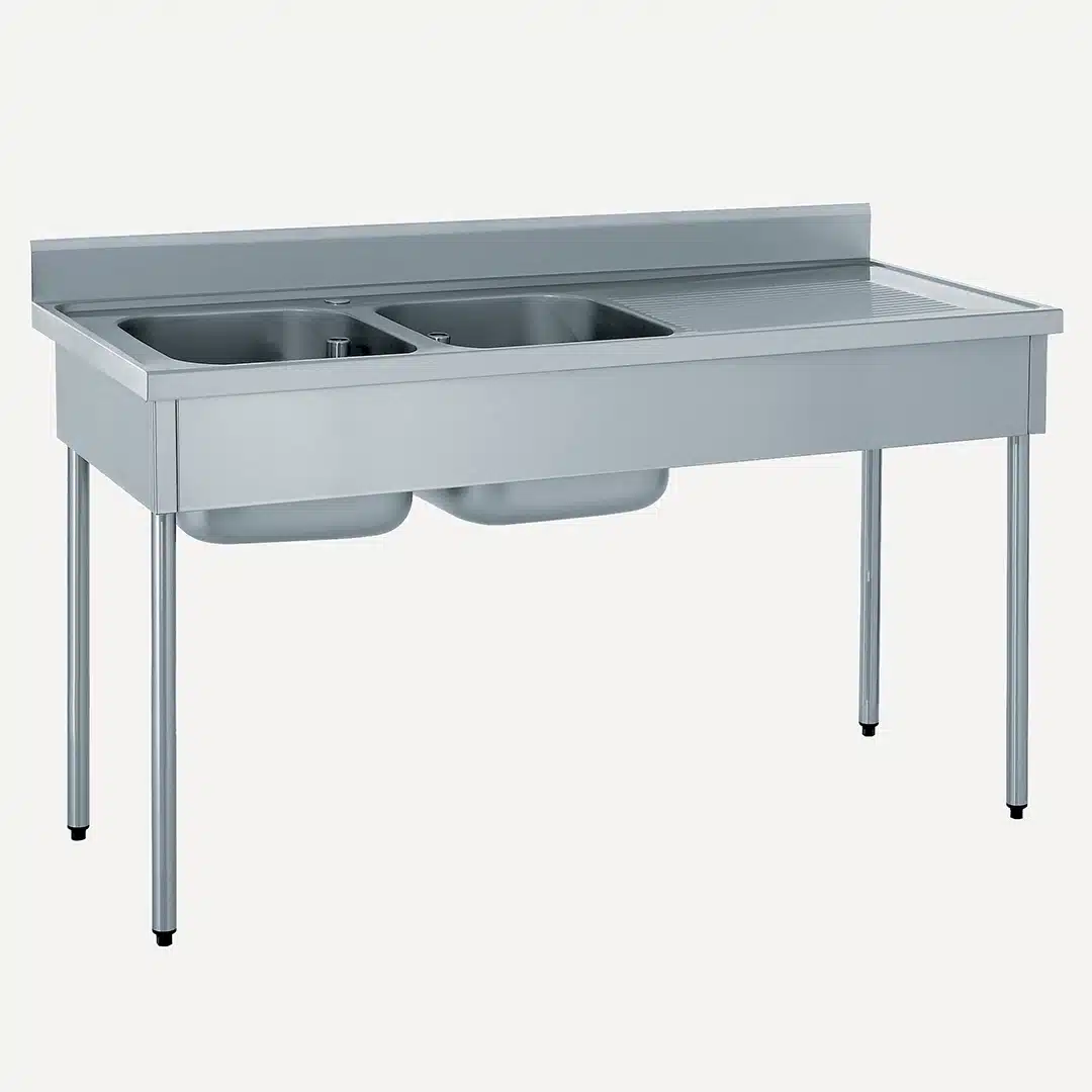 Plonge démontable, sans étagère, 2 bacs à gauche, 1 égouttoir à droite, essentielle pour assurer la propreté de vos vaisselles et de vos ustensiles de cuisine.