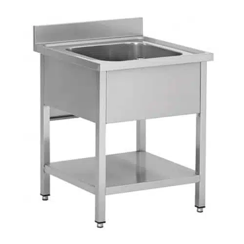 Plonge démontable sur pieds carrés, étagère pleine, indispensable pour assurer la propreté de vos vaisselles et de vos ustensiles de cuisine.