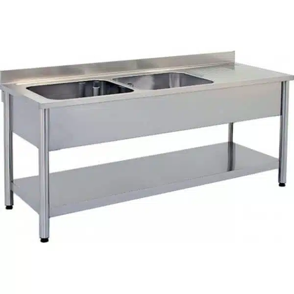 Plonge démontable sur pieds ronds avec étagère, indispensable pour assurer la propreté de vos vaisselles et de vos ustensiles de cuisine.