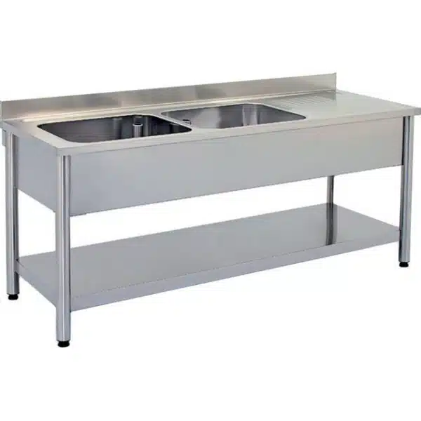 Plonge démontable sur pieds ronds, avec étagère, inox ferritique, indispensable pour assurer la propreté de vos vaisselles et de vos ustensiles de cuisine.