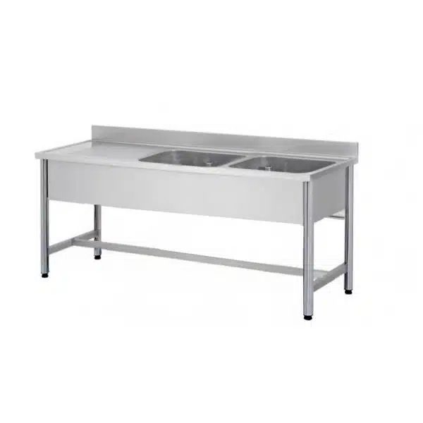 Plonge démontable sur pieds ronds sans étagère inox AISI 304 2 bacs longueur 1500 mm