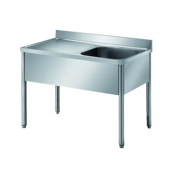 Plonge démontable sur pieds ronds sans étagère inox ferritique 1 bac profondeur 600 mm longueur 1200 mm