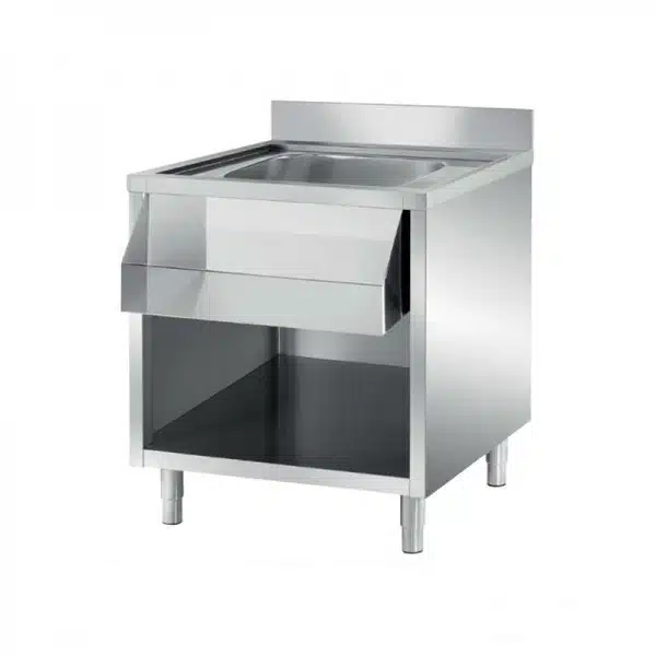 Plonge ouverte pré-percée sans porte (livrée sans robinetterie) avec siphon