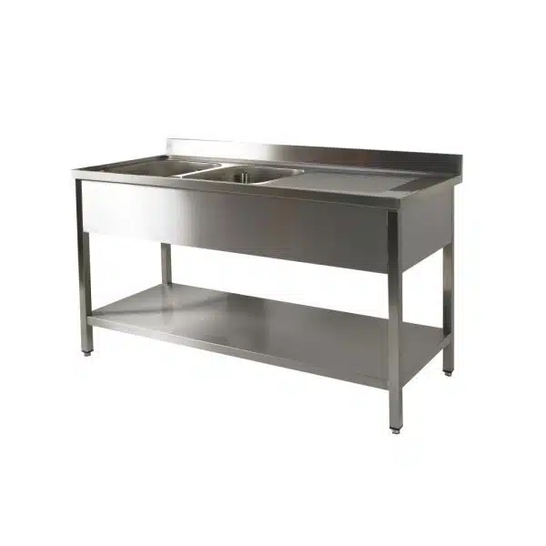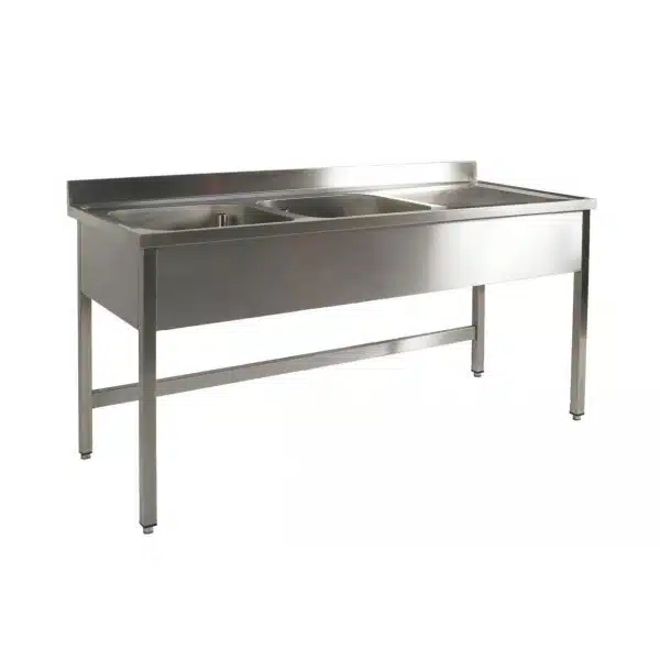 Plonge soudée 2 bacs, avec égouttoir, indispensable pour assurer la propreté de vos vaisselles et de vos ustensiles de cuisine.