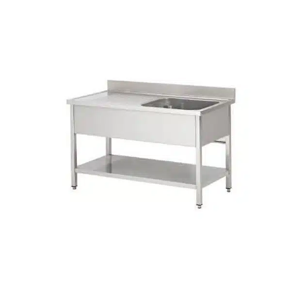 Plonge soudée sur pieds carrés avec étagère, indispensable pour assurer la propreté de vos vaisselles et de vos ustensiles de cuisine.