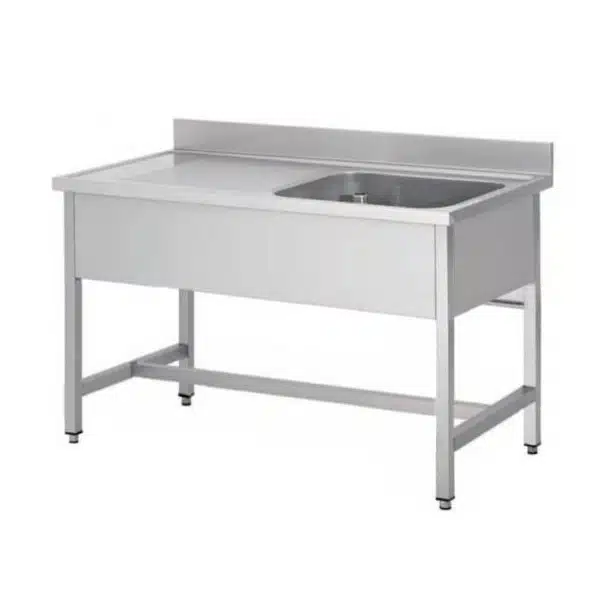 Plonge soudée sur pieds carrés sans étagère, indispensable pour assurer la propreté de vos vaisselles et de vos ustensiles de cuisine.